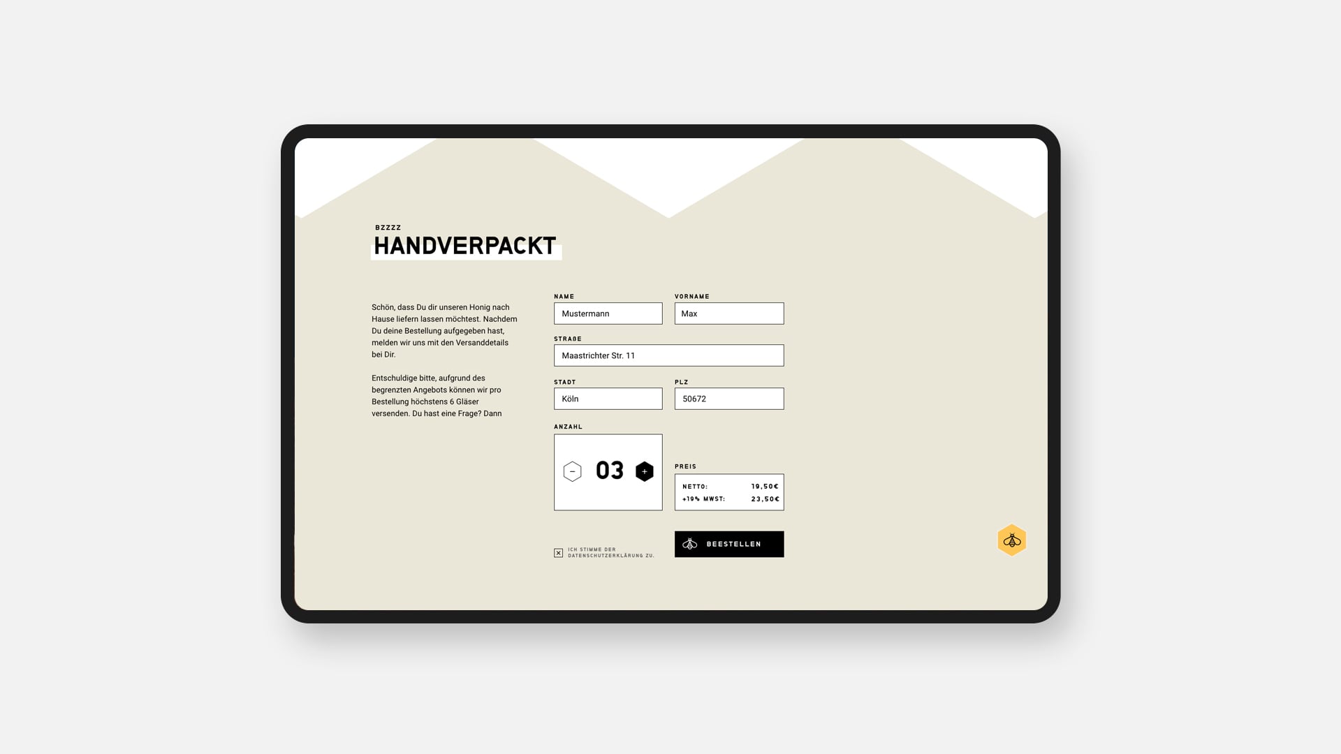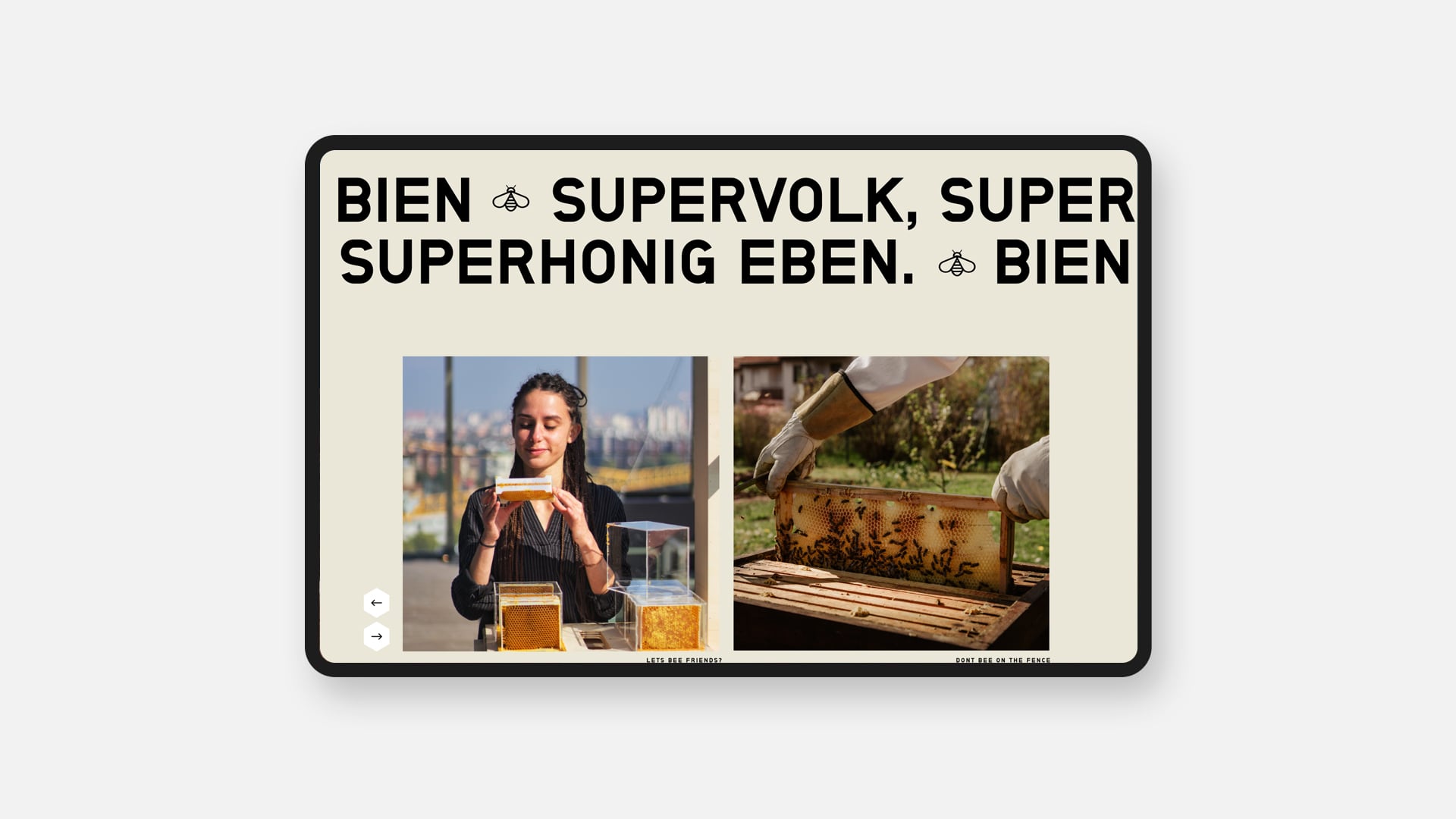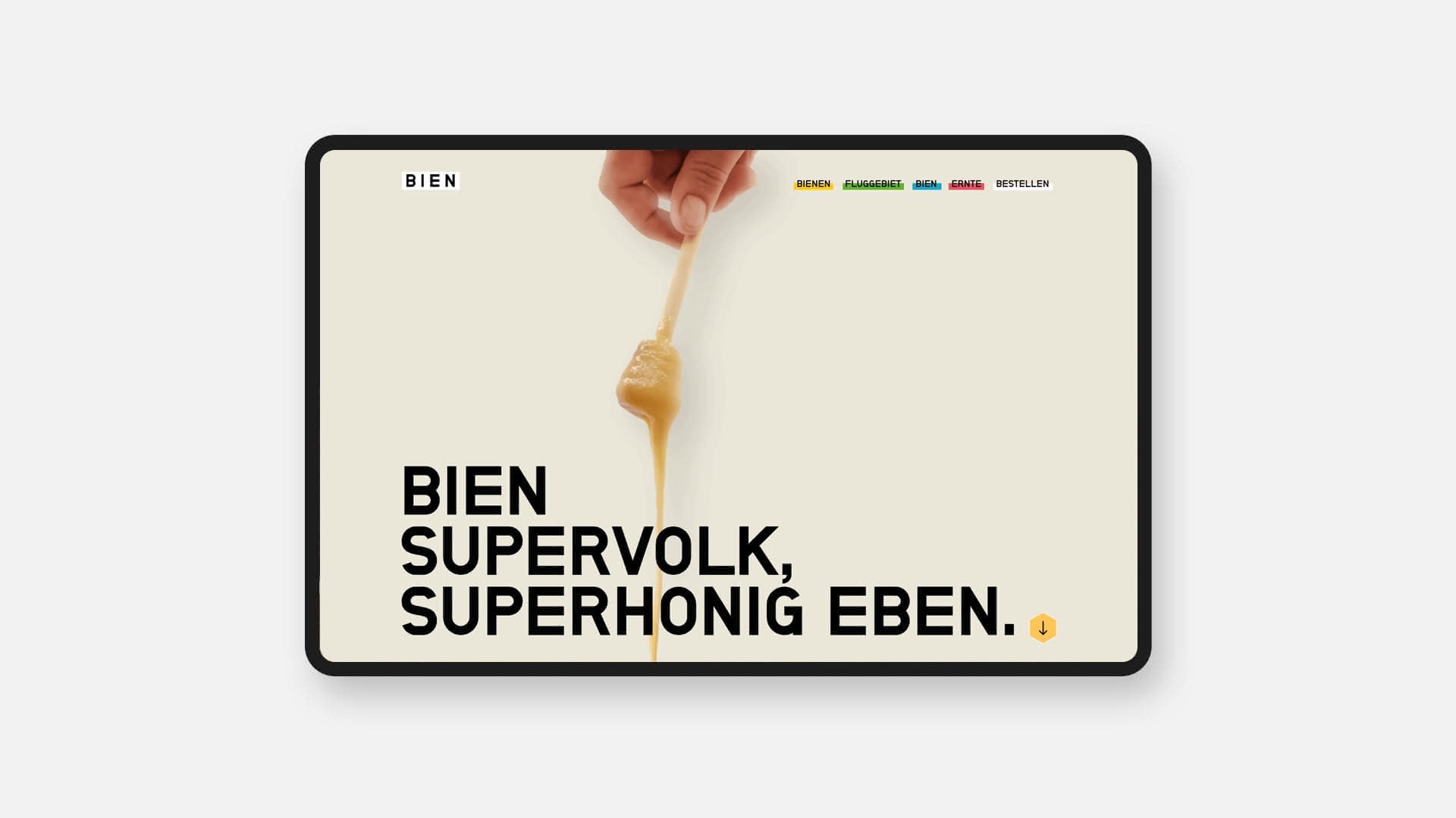 Webdesign und Layout für BIEN Honig aus Köln. BIEN Honig ist eine kleine Imkerei, die in einem Berliner Gewerbehof begann und 2018 mit über 100.000 Bienen aufs Land zog, um schließlich im Rhein-Sieg-Kreis sesshaft zu werden.