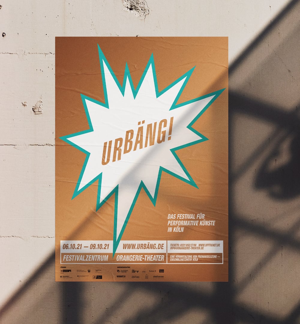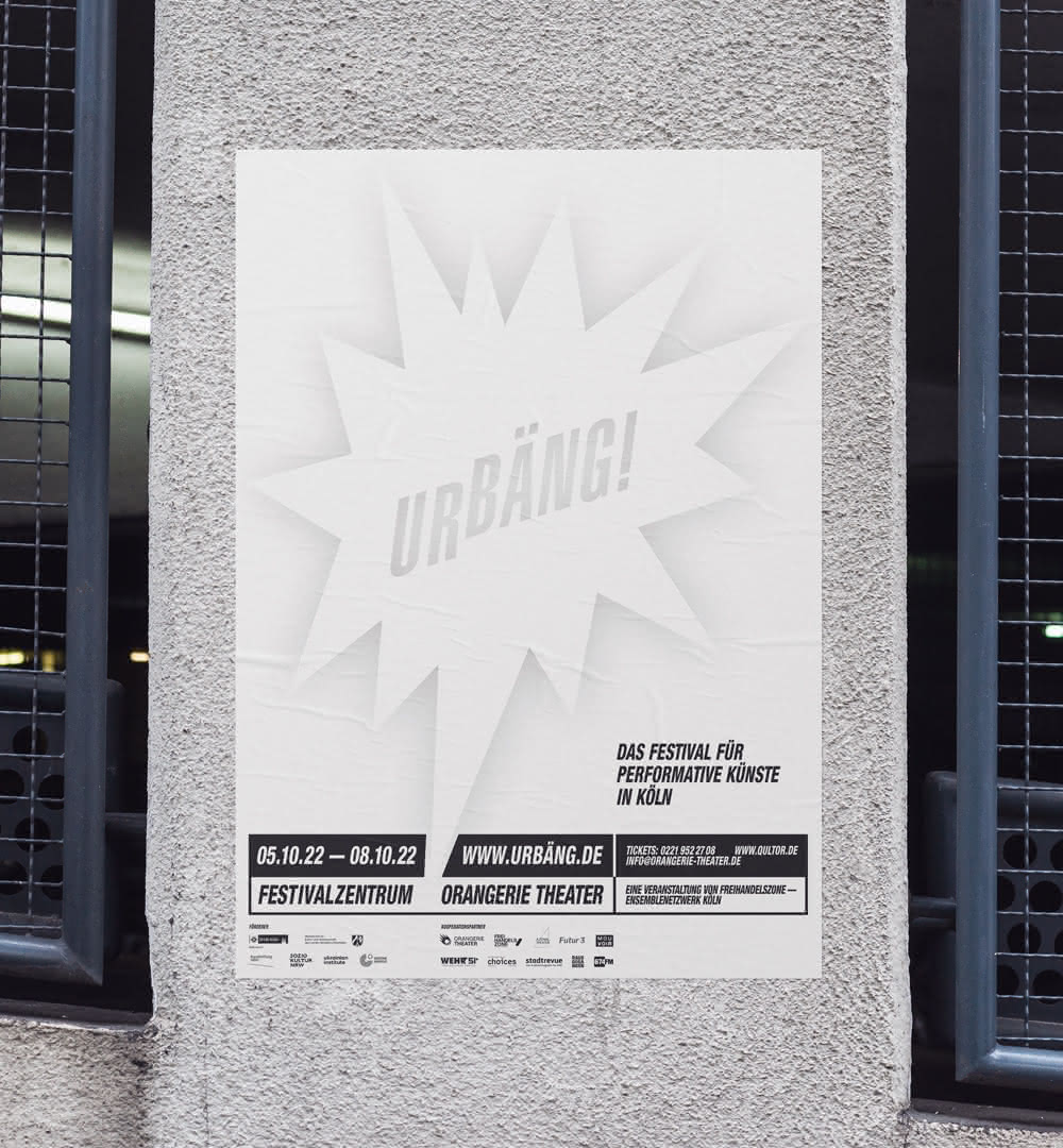 URBÄNG! Das Festival für performative Künste in Köln ist der Nachfolger von Globalize:Cologne. Es wurde eine dynamische Corporate Identity, ein Programmheft sowie Flyer und Poster gestaltet.
